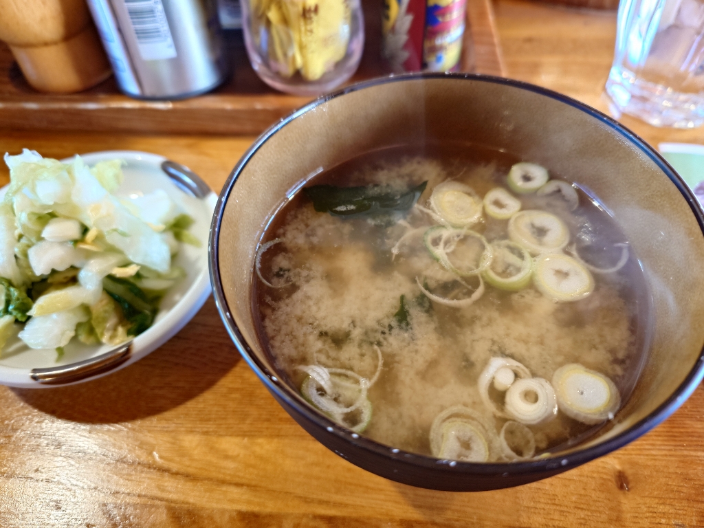 めっちゃ大きい、わらじカツ。甘いたれにひたってて、とても美味しい。みそ汁も、薬味ネギ入れてくれて、ネギの香りが良い感じ。