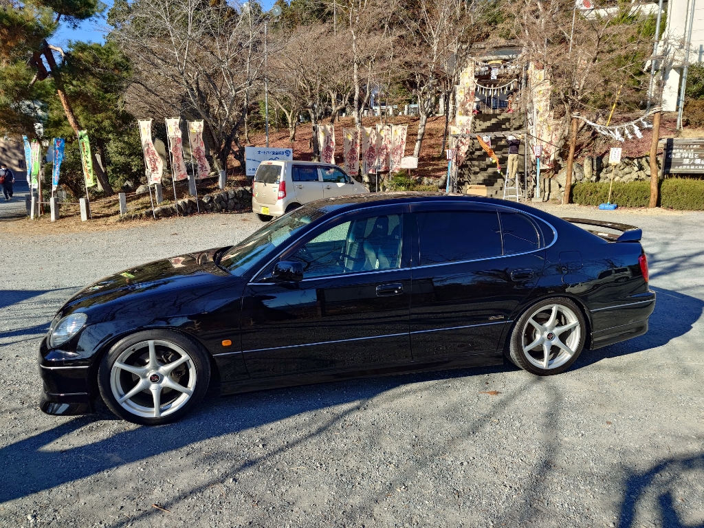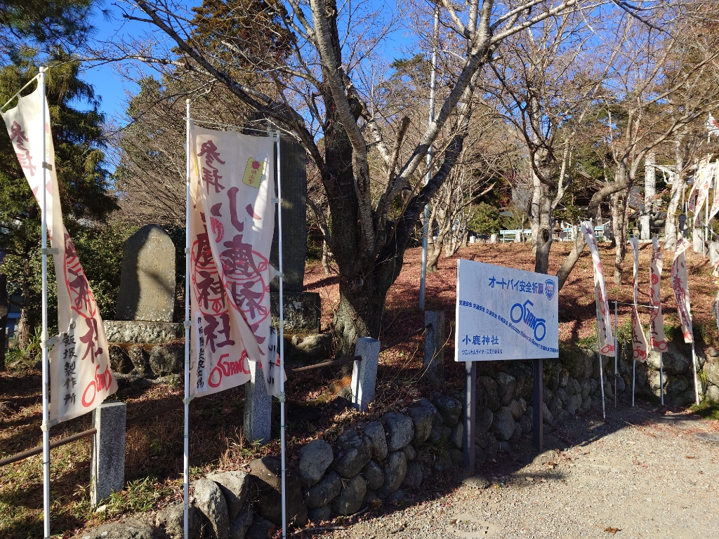 温泉であったまってくつろいだあとは、小鹿神社というバイク神社に行ってきました。でも、バイクではないけど、アリストですが。